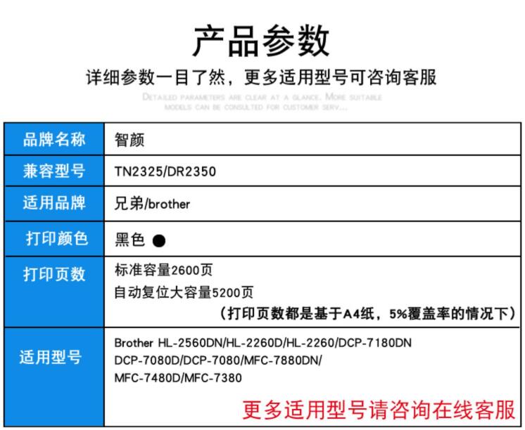 適用兄弟DCP7080D硒鼓TN2325粉盒DR2350硒鼓架MFC7380 7180DN 7480D 7880DN HL2260D 2560DN碳粉盒打印機(jī)墨盒